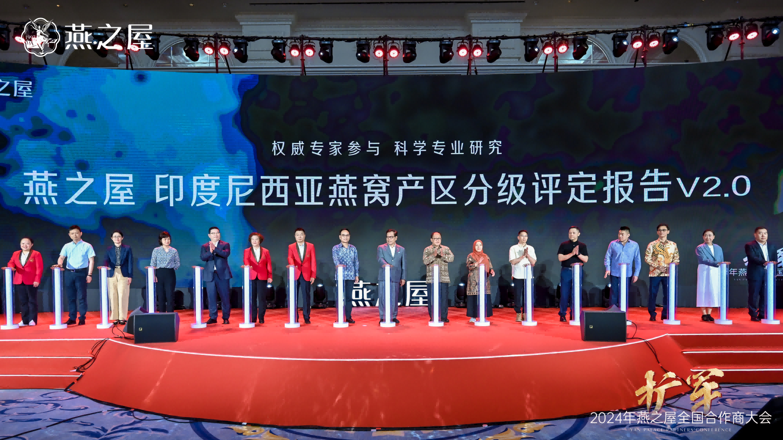 隨后,印度尼西亞駐華大使周浩黎,印度尼西亞動植物檢疫標準檢驗中心主任斯利揚托,廈門海關技術中心、國家燕窩及燕窩制品檢測重點實驗室主任徐敦明,印度尼西亞動植物檢疫標準檢驗中心研究員海爾米,印度尼西亞燕窩協(xié)會養(yǎng)護部部長安東,印度尼西亞燕窩協(xié)會國際貿易部副部長何文輝,江南大學未來食品科學中心鐘芳教授、陳茂深教授,華南理工大學食品科學與工程學院任嬌艷教授,印度尼西亞027工廠董事長魯?shù)?,印度尼西?04工廠普爾沃蘇特里斯諾,印度尼西亞014工廠露西亞娜,燕之屋執(zhí)行董事、副董事長鄭文濱,燕之屋執(zhí)行董事、總裁李有泉,燕之屋董事、副總經(jīng)理、供應鏈中心總經(jīng)理黃丹艷,燕之屋副總經(jīng)理、研發(fā)技術總監(jiān)范群艷,燕之屋供應鏈中心總監(jiān)魏溦等領導和嘉賓共同啟動發(fā)布《燕之屋印度尼西亞燕窩產(chǎn)區(qū)分級評定報告V2.0》。這標志著燕之屋在專業(yè)化、標準化、高質量發(fā)展上更進一步。