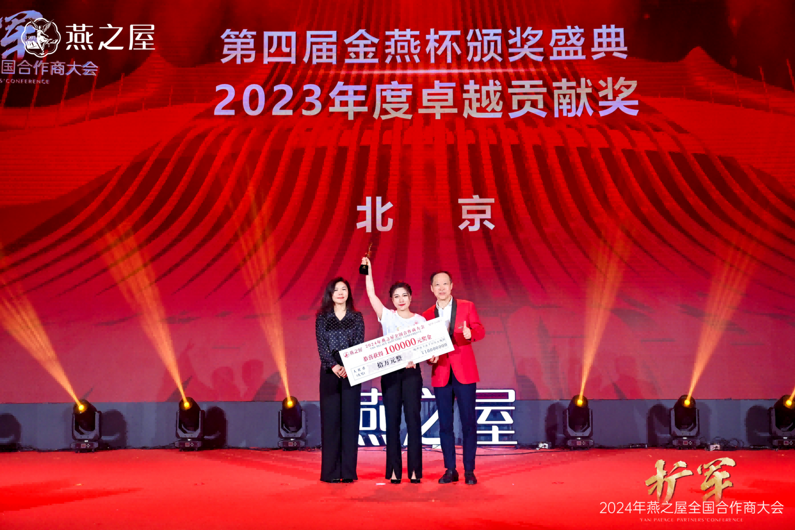 大會前夕,燕之屋特別舉辦擴軍·2024年燕之屋全國合作商大會歡迎晚宴,以及中央廣播電視總臺云聽&燕之屋聯(lián)合數(shù)字黨建室暨愛的詩篇特別歌詠活動。知名主持人黃薇,著名主持人、朗誦藝術家陳鐸,國家一級演員宗平,知名歌手黃英、蔡淳佳呈送精彩節(jié)目,共譜愛的詩篇。大會當晚,擴軍·2024年燕之屋全國合作商大會答謝晚宴傾情開啟,并同步舉行第四屆金燕杯頒獎盛典,表彰、嘉獎為全國市場做出了突出表現(xiàn)的個人與市場,感謝杰出伙伴為燕之屋點亮堅實前行的璀璨坐標。現(xiàn)場,2023年度卓越貢獻獎、2023年度杰出貢獻獎、2023年度金牌終端獎、2023年度金燕薈先鋒獎、2023年度創(chuàng)新突破獎等眾多獎項花落各家,再一次激發(fā)全員熱情與斗志。