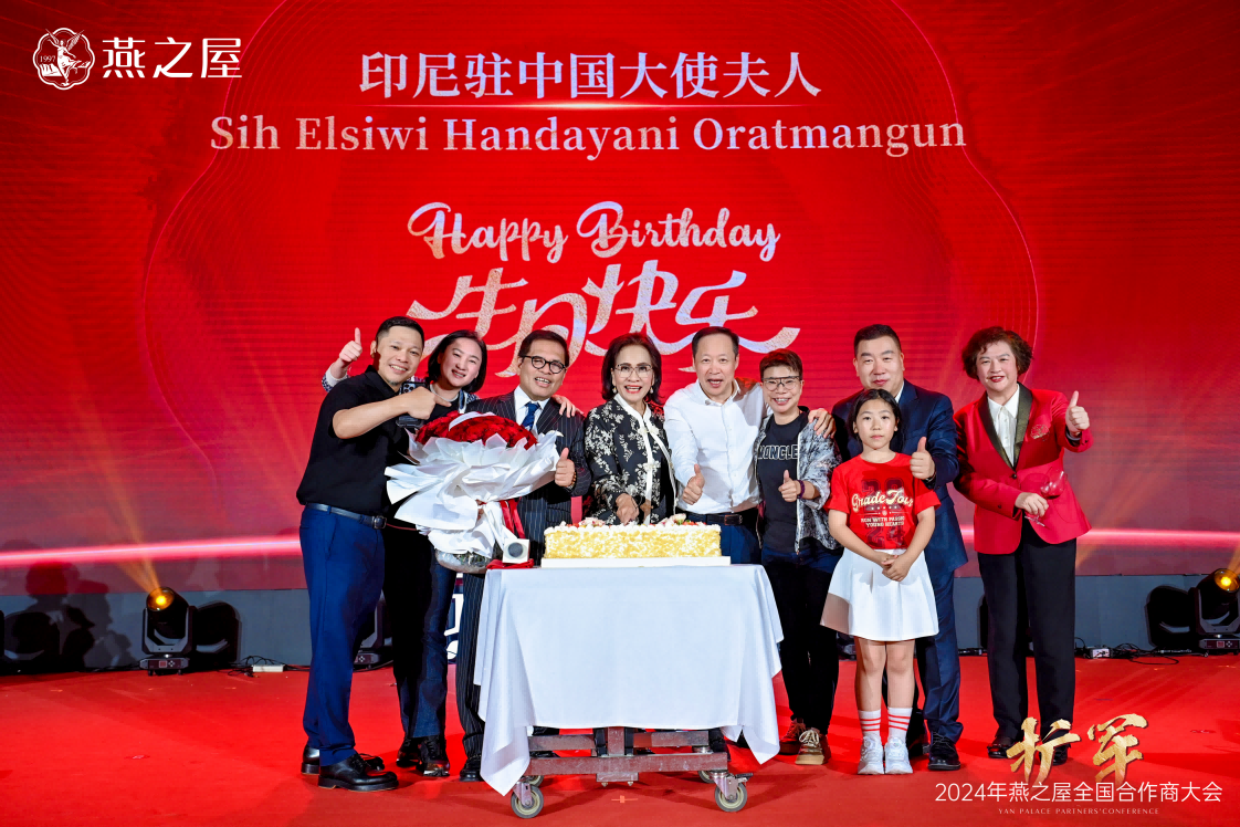 當天,燕之屋生態(tài)產(chǎn)業(yè)園同步開園,與燕之屋全國合作商大會的召開可謂雙喜臨門。燕之屋創(chuàng)始人、董事長黃健在祝酒詞中說道:“今天是一個值得銘記的日子,是燕之屋發(fā)展歷程中新的里程碑,我們共同見證了燕之屋生態(tài)產(chǎn)業(yè)園的盛大開園,在全國合作商大會上共同探討了行業(yè)趨勢、分享了成功經(jīng)驗,進一步鞏固了我們的合作關系。我相信,在未來的日子里,我們將攜手并進、共創(chuàng)輝煌。”此外,大會當日亦是印尼駐中國大使夫人“依布魏魏可歐拉蠻古”的生日,燕之屋為她送上生日蛋糕與祝福。晚宴上,精彩紛呈的歌舞表演“碗”美呈現(xiàn)撼動人心的視聽盛宴,使得在場嘉賓情緒高漲,現(xiàn)場氛圍熱烈非凡。
