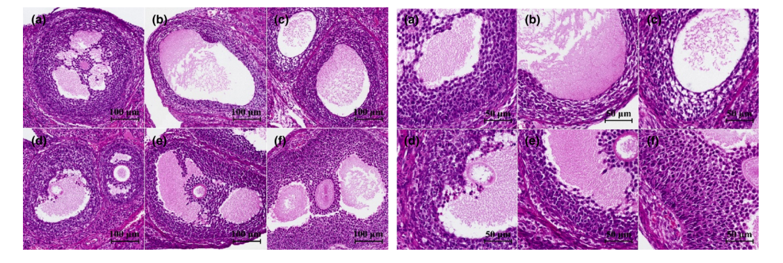 圖:燕窩對卵巢早衰組織病理學影響。(a)正常對照組,(b)模型對照組,