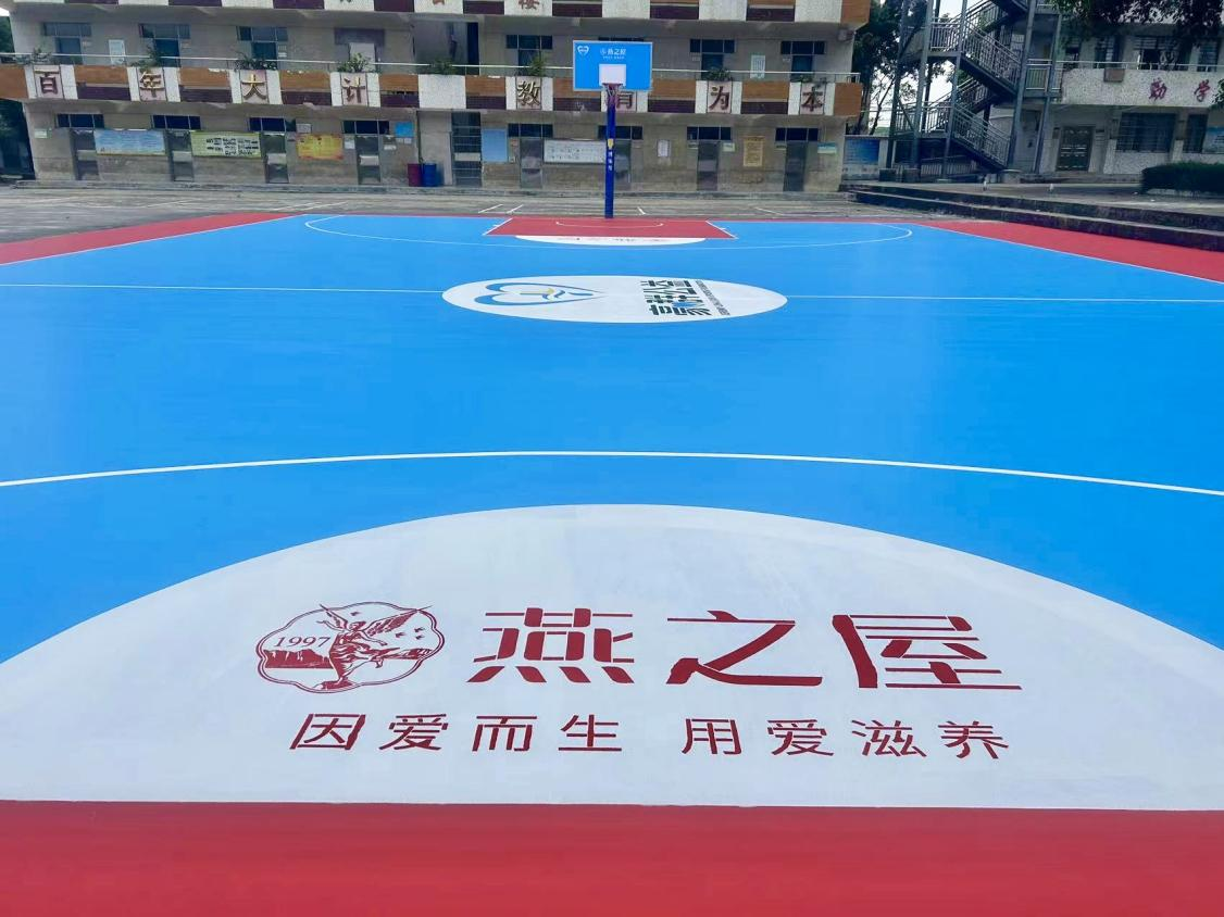 圖:燕之屋向廣東省韶關(guān)市武江區(qū)西河學(xué)校捐建的籃球場(chǎng)