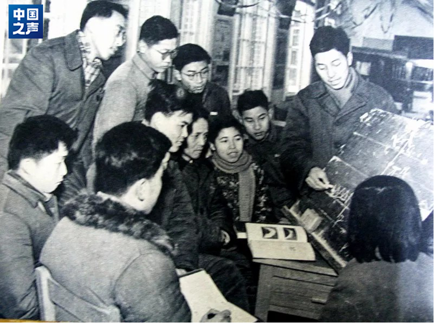 圖:1959年,方成和同學(xué)們討論太陽(yáng)塔設(shè)計(jì)。