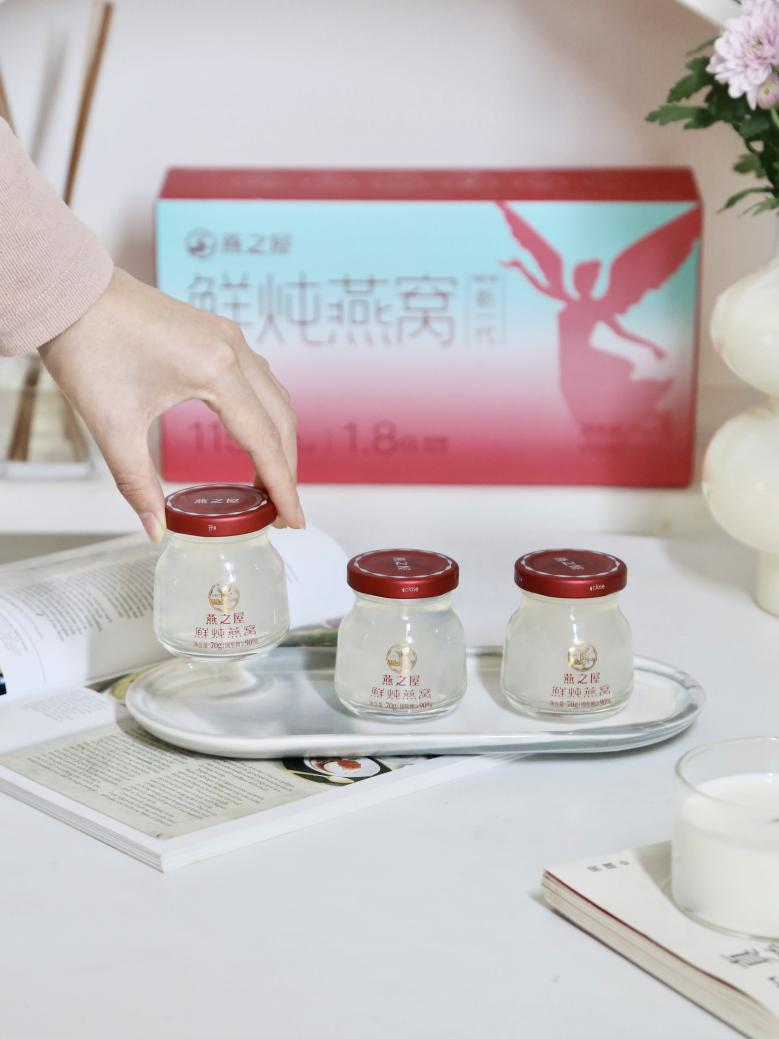 現(xiàn)代女性敢于追求,有主張、有見(jiàn)解,只為品質(zhì)好物買單。燕之屋新一代鮮燉燕窩(70g)迎合現(xiàn)代女性輕滋養(yǎng)需求,低糖款配料只含燕窩、純凈水和冰糖,且0添加劑、0防腐劑、0增稠劑、0脂肪*(*指本產(chǎn)品生產(chǎn)過(guò)程中0%添加防腐劑山梨酸鉀、苯甲酸鈉,0%添加增稠劑瓊脂),純粹配方更安心。每瓶燕之屋新一代鮮燉燕窩(70g)食用燕窩投料量≥3.5g,固形物含量≥90%,燕窩酸含量≥252mg,真材實(shí)料看得見(jiàn),滿足女性對(duì)健康與品質(zhì)的雙重追求,助力女性保持好狀態(tài)。此外,燕之屋新一代鮮燉燕窩(70g)經(jīng)高溫鎖鮮精燉,滅菌徹底更安全,實(shí)現(xiàn)常溫新鮮保質(zhì)15天,每一瓶深度滋養(yǎng),每一口都是鮮活好滋味。