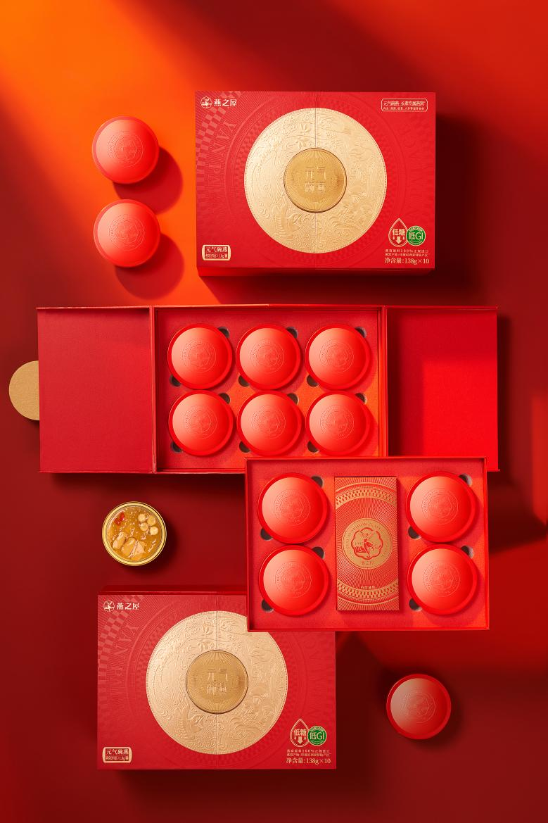 為長(zhǎng)輩挑選滋補(bǔ)好禮,煥新升級(jí)的碗燕·元?dú)饪疃Y盒實(shí)為優(yōu)先之選。中國(guó)紅與黃金色系的精美配搭,凸顯光亮色澤與尊貴質(zhì)感,大方得體,有禮有面。禮盒設(shè)計(jì)圍繞“圓”的概念,以年輪為設(shè)計(jì)意象,象征歲月賦予的智慧,也傳遞著圓滿之意。盒上刻畫金燕反哺動(dòng)人圖景,祥云繁花環(huán)繞其中,蘊(yùn)藏濃厚情意。獨(dú)特的對(duì)稱開盒頗具巧思與創(chuàng)意,內(nèi)里雙層設(shè)計(jì),共承十碗珍饈碗燕·元?dú)饪睿瑵M載濃濃營(yíng)養(yǎng)與深切關(guān)懷,讓滋補(bǔ)觸手可及,關(guān)愛(ài)無(wú)處不在。
