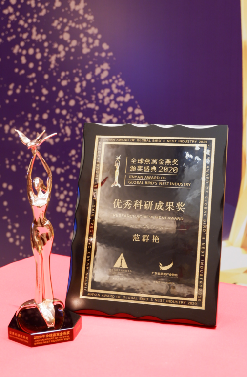 5月27日,燕之屋榮獲福建省食品工業(yè)協(xié)會頒發(fā)“科技成果轉(zhuǎn)化示范企業(yè)”獎項、燕之屋燕窩研究項目獲“第六屆福建省食品工業(yè)科學(xué)技術(shù)進(jìn)步一等獎”,燕之屋副總經(jīng)理、研發(fā)總監(jiān)范群艷亦被頒予“福建食品工業(yè)40年突出貢獻(xiàn)人物”獎項。